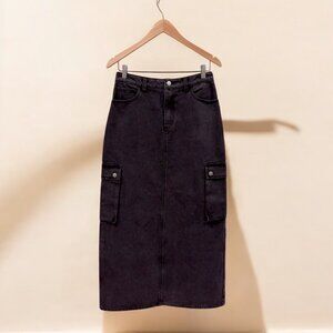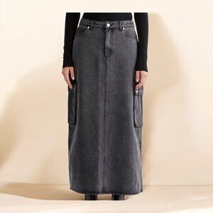 NWOT Ena Pelly Nova Denim Maxi Cargo Skirt in Charcoal Wash