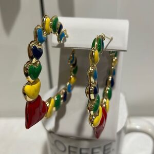 Description: puff enamel heart hinge hook earrings. (Lightweight for size)