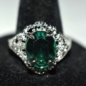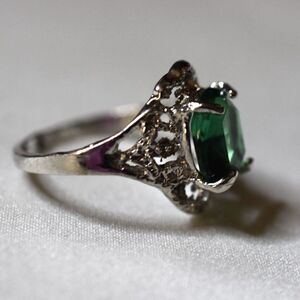 NWOT Enchanting Emerald Green Beveled Crystal Filigree Silver Tone Size 11 Ring