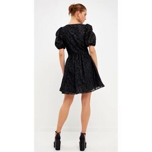 NWOT Endless Rose Texture Floral Organza Black Puff Sleeve Mini Dress