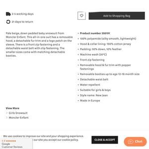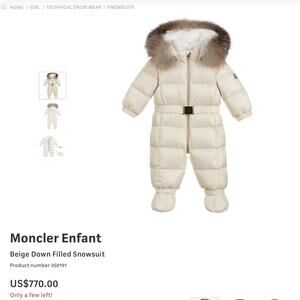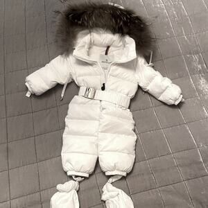 NWOT Enfant Moncler Fur Trimmed Winter White Snowsuit Fits Infant to 1 yr