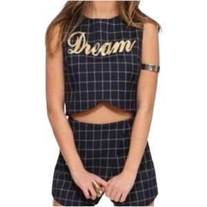 * NWOT English Factory Gray Checkered Dream Sleeveless Crop Top