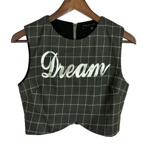 NWOT English Factory Gray Checkered Dream Sleeveless Crop Top Women's Size Small