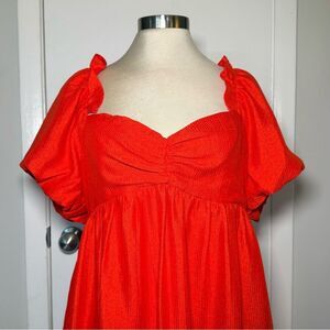 NWOT English Factory Mini Babydoll Dress Short Balloon Sleeves Red L