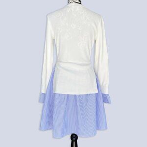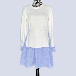 English Factory, mini dress, poplin combo, knit sweater dress, blue white, striped skirt, long sleeve, ribbed, A-line, crewneck, size small, stretchy, trendy, cute, preppy, casual, comfy, new without tags, NWOT, versatile, fall outfit, layered look, bundle and save, open to offers