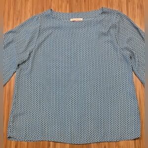 Elevate your wardrobe with this stylish blue patterned top. Perfect for any occasion, this top offers both comfort and elegance. Great condition. Cute sleeves.