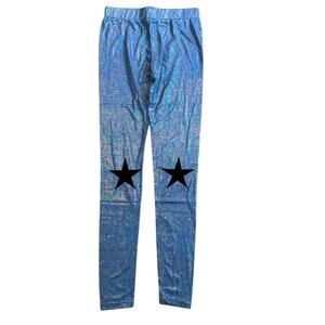 English Rose Star Patch Iridescent Blue Legging Size S NWOT