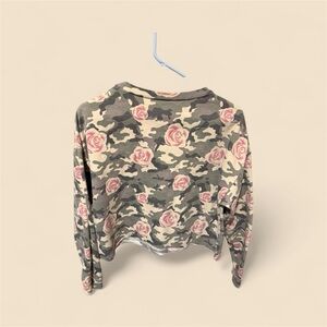 NWOT Enough About Me Camouflage Rose Print Cropped Sweater