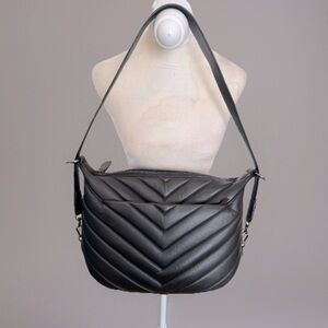 NWOT Eric Javits Quilted Gran Chevron Jesse Bag, Black with Silver Hardware