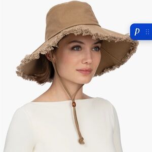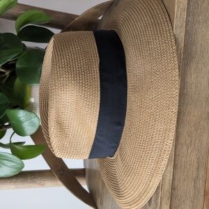 NWOT Eric Javits Phoenix Fedora Hat Natural Black UPF 50+ Sun Protection