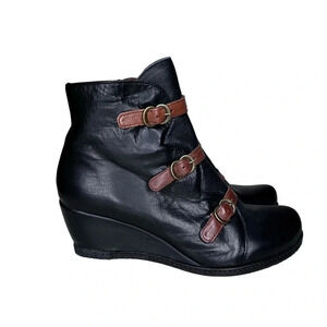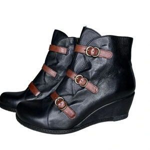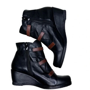 NWOT Eric Michael Lena Black Leather Wedge Ankle Bootie w/Buckles US 5.5/EU 36