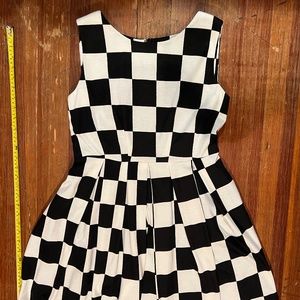 NWOT Esley Sleeveless Pleated Black & White Checkerboard Mini Dress-Large (M/L)