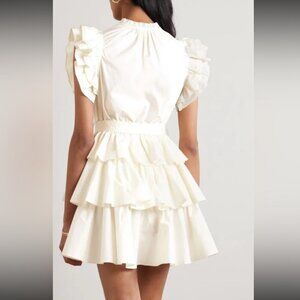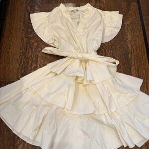 NWOT Estellina White Flutter Sleeve Mini Tiered Dress US M