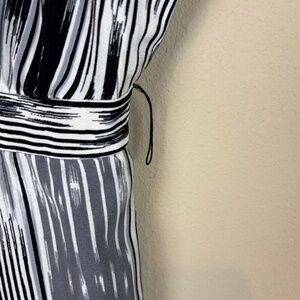 NWOT Etcetera Black/Bone/Gray Striped Cap Sleeve 100% Silk Dress; Size 4
