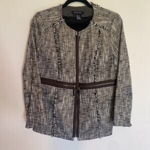 NWOT Etcetera Women's Brown and White Tweed Jacket Zipper Details Size 10