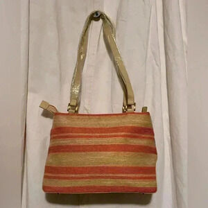 NWOT Etienne Aigner Striped Purse. Y2K Still Plastic Wrapped Handles, Never Used