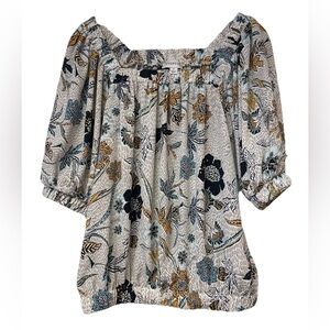 NWOT Evereve Adina Square Neck Floral Print top Size S blue and white print