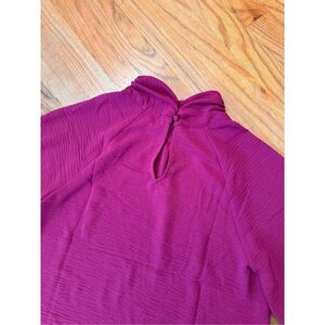 Elevate your office-to-evening look with this gorgeous mockneck blouse by EVEREVE. Crafted in lightweight textured fabric, the Devin top features a flowy fit, back keyhole button closure, and raglan puff sleeves with elastic cuffs. Wear half-tucked into jeans or trousers for an effortlessly stylish look.