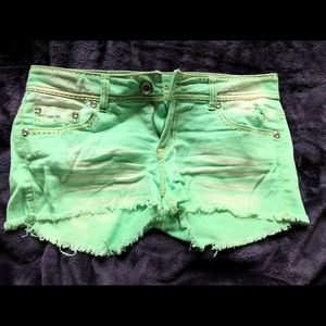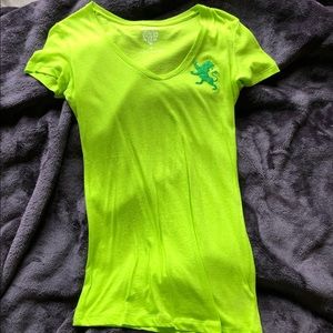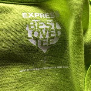 NWOT Express Best Loved Tee V-Neck. Color is a neon green with a decorative Kelly green embroidered lion on the left chest. Never worn, excellent condition. Size small.