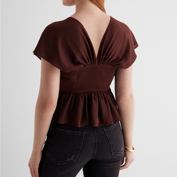 NWOT Express Flowy Sweetheart Neckline Peplum Blouse “Rich Mocha” Color SIZE L