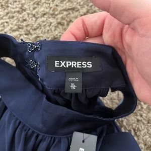 NWOT Express Halter Top Blouse Women's Size XL Blue Satin Drape 100% Polyester