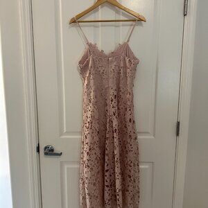 NWOT Express Lace Overlay Midi Dress, Rose Cream, Size M
