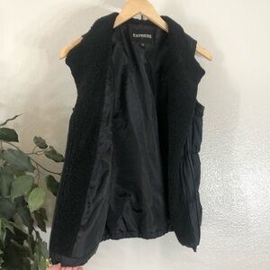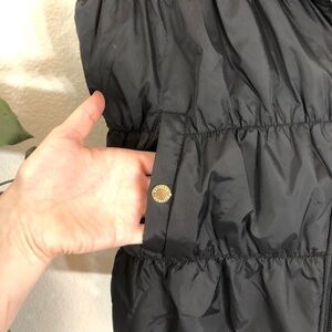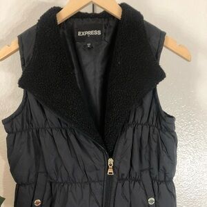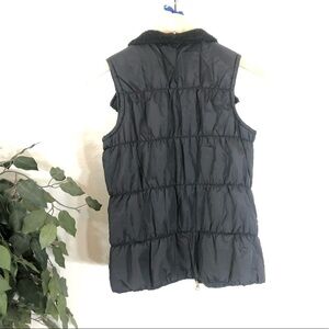 A light weight fashion puffer vest! Black with gold buttons, zippers and detailed with a faux fur collar. Perfect for a crisp fall day!