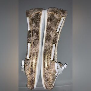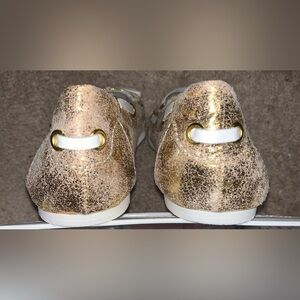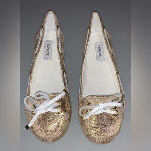Chic metallic loafers with bow accent. Ideal for stylish outings. Size 7. New without box or tag. Never worn.