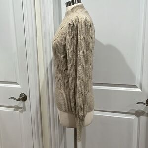 NWOT Express Metallic Sweater Puff Sleeve Gold threading Open Stitch Size Small