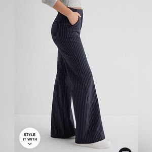 NWOT Express Navy Pinstripe Editor High Waisted Flare Trousers Pants 12 Regular in perfect condition! I removed the tags and took them to the dry cleaners.