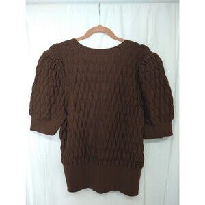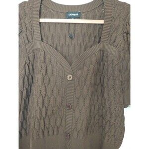 NWOT Express Sz XL Chocolate Brown Short Sleeve Button Up Sweater Puffy Quilted