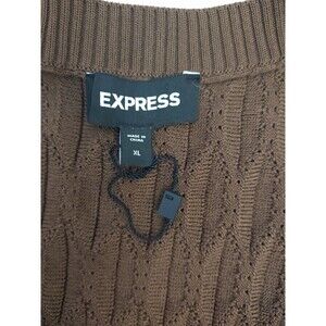 NWOT Express Size XL Chocolate Brown Short Sleeve Button Up Sweater Puffy Quilted