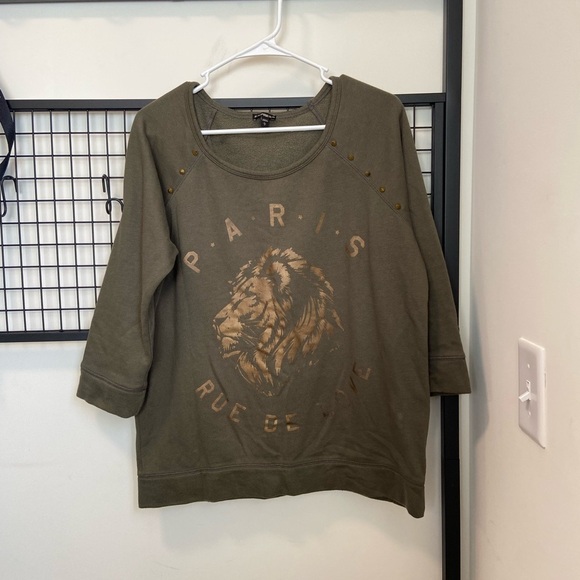 Women’s Express crewneck. Crewneck is olive green with gold decal & studs. Size large. Smoke free home!