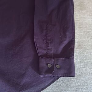 NWOT Express Mens 1 MX dress shirt in solid purple with spread collar, long sleeve, buttoned barrel cuff and shirttail bottom. 100 pure cotton.