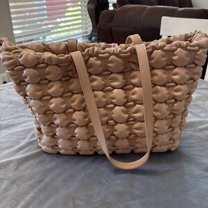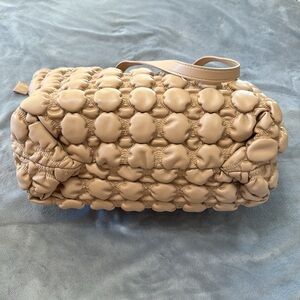 NWOT Expressions Large Tan Puffer Bubble Bag Shoulder Strap Pouch Extra Soft