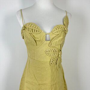 NWOT FARM RIO Linen Sand 3d Flower Midi Dress Size XS