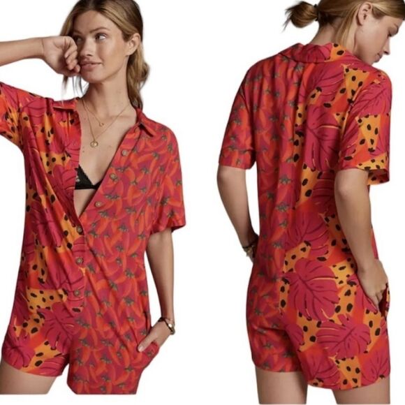 NWOT FARM Rio Contrast Hot Chili Peppers and Palm Leaves Banana Romper size Med