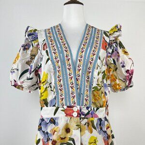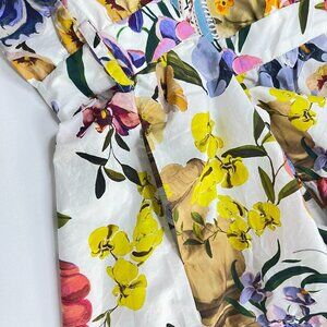NWOT FARM Rio Floral Ruffles Greek Garden Off-White Mini Dress Size XL