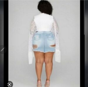 This top is giving off all the boho vibes. Featuring a sexy tie front that can also be tied around your waist and a cropped length with flowy lace sleeves that are adorned with fringe detail at the hem, this top is perfect for a summer look that is guaranteed to make a statement.