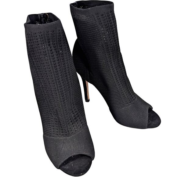From Catharine MALANDRINO, these stiletto stretch woven black heels feature perfect fit and a peep toe! Slip-on, SHORTIE boots style! Size 8, 4.25" Heel, Used in one show, otherwise New, but with a *Condition Note: the tiny 1/2 inch back strip inside the back of the boots is beginning to peel in both, cannot be seen when on, and very minor peeling. Plz see pix! This the super low price! Otherwise:New! ***NEW Without Tags, and Guaranteed Superb by Lily @nocd, @nocdLily!* *Measurements always available on request!*
