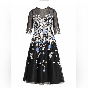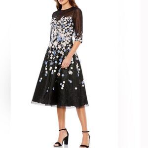 NWOT FLORAL EMBROIDERED A-LINE TEA-LENGTH COCKTAIL DRESS 11161