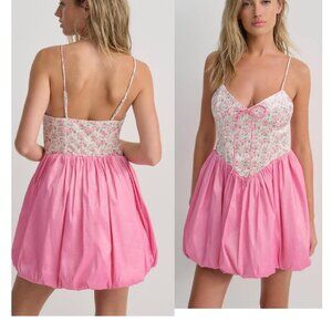 NWOT FOR LOVE AND LEMONS SARIYA PK ROSE VELVET & TAFFETA BUBBLE HEM MINI DRESS S