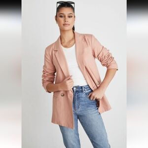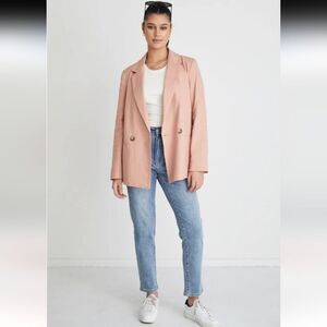 NWOT FORE Linen Blend Double Breasted Lined Long Line Blazer Small