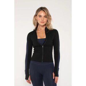 NWOT FORM Two Toned Navy Blue Black Full Zip Fitted Jacket Women's Small S