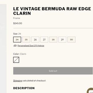 NWOT FRAME Le Vintage Bermuda Raw Edge Denim Shorts in Clarin - Size 23
