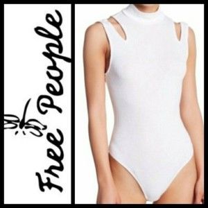 NWOT FREE PEOPLE BODYSUIT WHITE CUT-OUT SLEEVELESS SIZE SMALL WOMENS SMA…