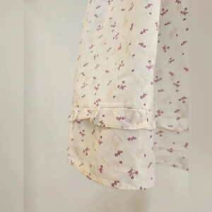 This is a Free People Gabby minidress in size small. It is new without tags. This is white with a pink cherry print. It has adjustable shoulder straps, pleating throughout, tiered tie closure at back and ruching at waist.