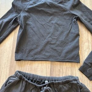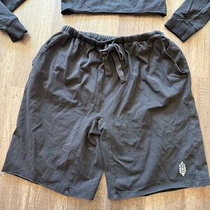 Effortlessly elevate your workout wardrobe rotation with this super cool set featuring an off-the-shoulder long-sleeve top with coordinating longline shorts for the perfect done-in-one look no matter the activity.