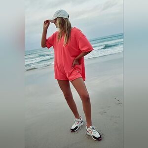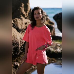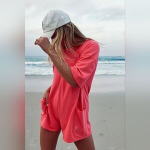 NWOT Free People Hot Shot Tee Romper in Electric Sunset