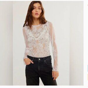 NWOT FREE PEOPLE Ready To Party Bodysuit White Embellished Lace Mesh